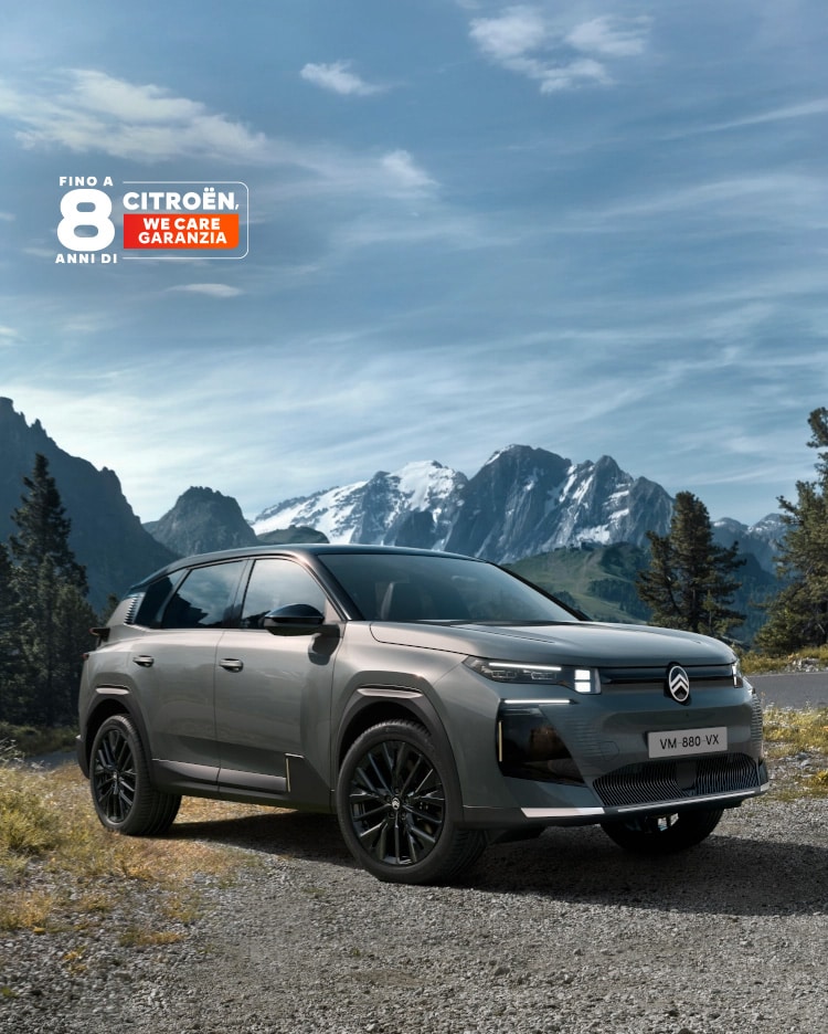 DETTAGLIO PROMOZIONE. Es di finanziamento SimplyDrive su NUOVA CITROËN C5 AIRCROSS HYBRID 145 AUTOMATICO YOU: Prezzo Listino (IVA e messa su strada incluse, IPT, kit sicurezza + contributo PFU e bollo su dichiarazione di conformità esclusi) 33.990 €. Prezzo Promo 29.900 €. (oppure 28.900 € oltre oneri finanziari, solo con finanziamento SimplyDrive). Anticipo 2.777 € - Importo Totale del Credito 26.394 €. L'offerta include il servizio Identicar 12 mesi di 271€. Importo Totale Dovuto 31.020,69 € composto da: Importo Totale del Credito, spese di istruttoria 395 €, Interessi 4.038,72 €, spese di incasso mensili 3,5 €, imposta sostitutiva sul contratto da addebitare sulla prima rata di 66,97 €. Tale importo è da restituirsi in n° 36 rate come segue: n° 35 rate da 249 € e una Rata Finale Residua (pari al Valore Garantito Futuro) 22.238,76 € incluse spese di incasso mensili di 3,5 €. Spese invio rendiconto periodico cartaceo: 0 € /anno. TAN (fisso) 5,49%, TAEG 6,97%. Solo in caso di restituzione e/o sostituzione del veicolo alla scadenza contrattualmente prevista, verrà addebitato un costo pari a 0,1 €/ km ove il veicolo abbia superato il chilometraggio massimo di 30.000 km. Offerta valida solo su clientela privata solo per contratti stipulati fino al 31 Marzo 2026 in caso di permuta o rottamazione, non cumulabile con altre iniziative in corso. Offerta Stellantis Financial Services Italia S.p.A. soggetta ad approvazione. Documentazione precontrattuale bancaria/assicurativa in concessionaria e sul sito www.stellantis-financial-services.it (Sez. Trasparenza). Messaggio Pubblicitario con finalità promozionale